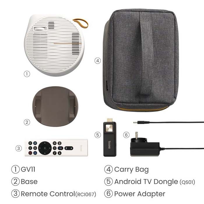 BENQ GS50 Portable Projector 500 ANSI Lumens FHD 1920x1080 Display Aspect Ratio 16:9 DLP projection system Remote Control Bluetooth WiFi Android TV dongle Built in Speaker Operating System Android 10.0 -White