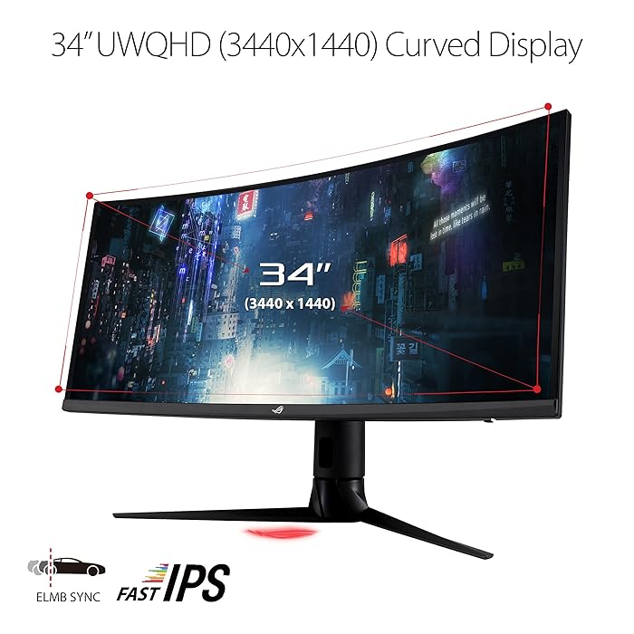 اسوس  PG35VQ روج سويفت شاشة الألعاب ذات النطاق الديناميكي العالي فائقة العرض مقاس 35 بوصة FALD 512 منطقة ذروة السطوع 1000 شمعة في المتر المربع وإمكانية رفع تردد التشغيل 200 هرتز شاشة عرض G-SYNC Ultimate بسرعة 2 مللي ثانية تقنية  1000اتش دي آر نقطة كمية تحكم ذكي في المروحة مضخم صوت Aura Sync عالي الجودة ESS