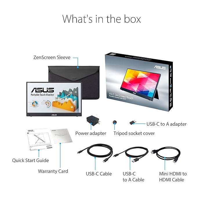 اسوس شاشة زين سكرين باللمسMB16AHT المحمولة 16 بوصة دقة فل اتش دي آي بي اس تعمل باللمس حتى 10 نقاط مسند اتش دي ام آي صغير الحجم مقبس ثلاثي القوائم وميض مجاني وتقنيات الضوء الأزرق المنخفض
