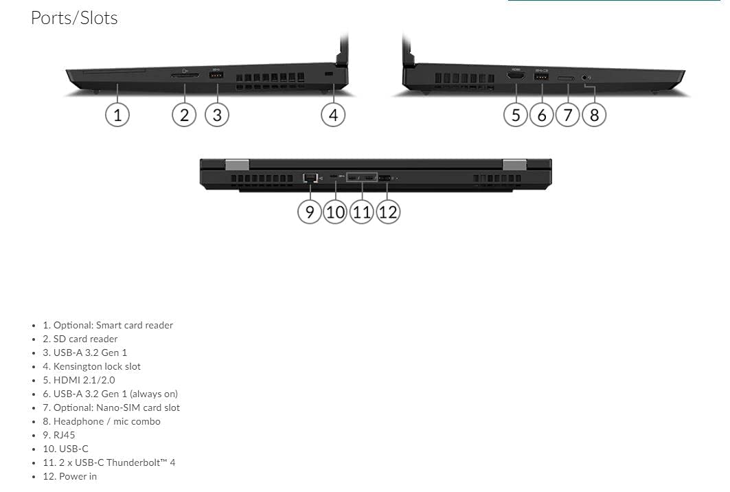 2x Thunderbolt™ 4 / USB4® 40Gbps (support data transfer, Power Delivery 3.0 and DisplayPort™ 1.4a) 1x HDMI®, up to 8K/60Hz 1x SD card reader |